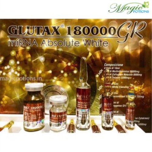 Glutax 180000GR Mirna Absolute White Skin whitening lighten pigmentation and freckles makes your skin look younger. It create collagen and also elastin which make your skin firm decrease the manufacturing of melanin and also giving your skin an overall lighten appearance. It is powerful antioxidant which prevent creases, fine line as well as sag improves skin hydration level.